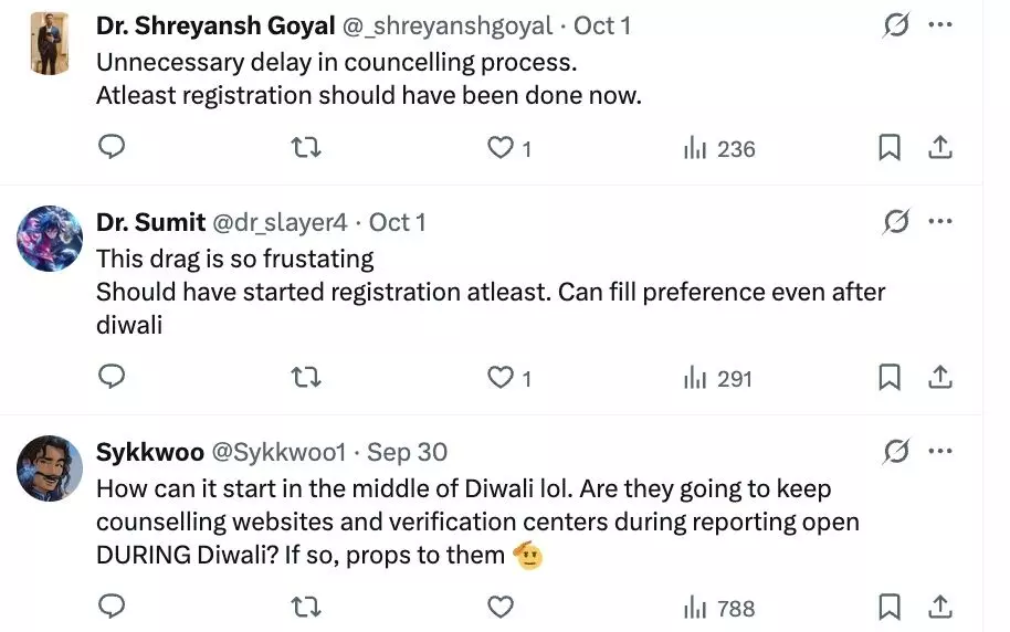 Some of the users pointed out that this delay in commencing the counselling schedule is also affecting the patient care at the hospitals, where only 2 batches of resident doctors are currently available.