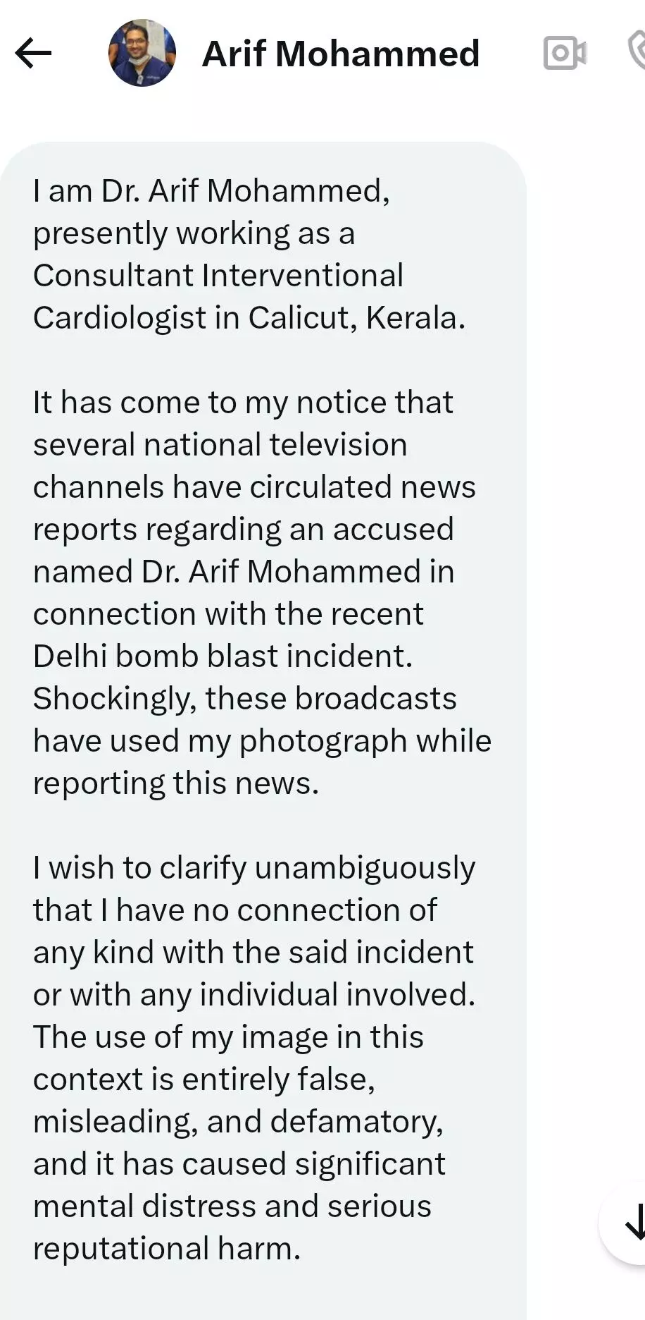 Issuing a strong clarification in this regard, the Kerala-based doctor said that several national television channels reported about an accused named Dr. ***, but used his photograph in their coverage.